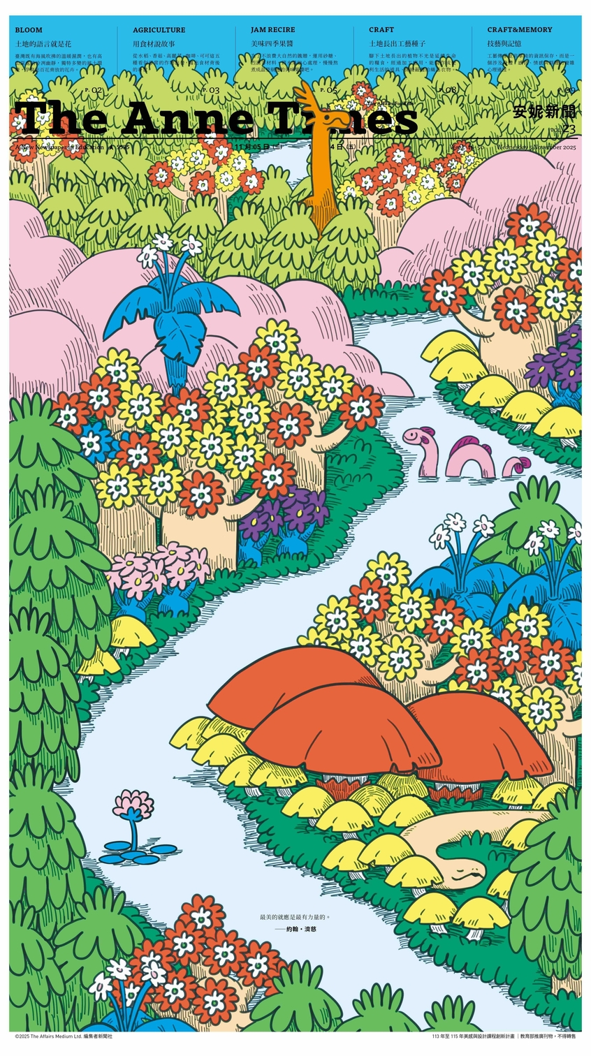 封面概念 | 仔細欣賞封面的島嶼花園,彷彿被巧手魔法師細心照顧,長出餵飽脾胃的果實,也長出充滿智慧的花與葉。本期主題聚焦臺灣人如何用雙手與土地對話,有人用巧手和智慧,讓作物更適合這片風土;也有人把植物做成工藝品,一代代傳承下去。這座島嶼花園孕育出無數故事,關於綻放與創造,也關於那些在時間裡延續的傳承與傳說。